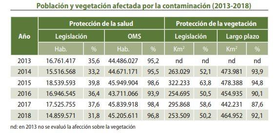 Estas cifran resultan de utilizar como referencia los valores límite y objetivo establecidos para los contaminantes principales citados por la Directiva 2008/50/ de la Comisión Europea y el Real Decreto 102/2011. Sin embargo, si se tienen en cuenta los valores recomendados por la Organización Mundial de la Salud (OMS), más estrictos que los límites legales (y más acordes con la protección de la salud), la población que respiró aire contaminado en España durante el año pasado se incrementa hasta los 45,2 millones de personas. Es decir, un 96,8% de la población. «En otras palabras, la práctica totalidad de los españoles respiró un aire con niveles de contaminación superiores a los recomendados por la OMS. Esta situación supone un modesto descenso de 0,6 millones de afectados respecto a 2017, y se mantiene por encima de la incidencia en la década, salvo el año 2015», agrega el informe.