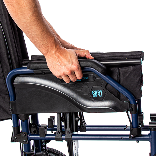 La Saby Plus es la versión superior de la silla Saby, mejorada con prestaciones que superan a la silla líder en ventas. Fabricada en acero, es ligera y robusta, soportando 120 kg. Está disponible en dos tamaños de ruedas: Ø30 cm en la Saby-20 Plus y Ø60 cm en la Saby-21 Plus, todas equipadas con el sistema de extracción rápida quick release.