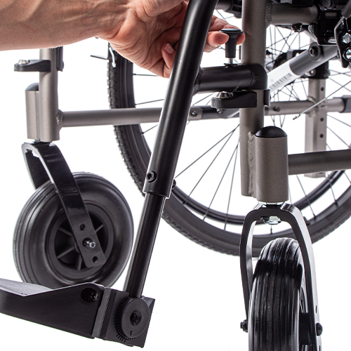 Los reposabrazos son abatibles de forma rápida y sencilla, facilitando la transferencia del usuario. Además, incluyen una pieza de serie que permite elevar el reposabrazos en 2 cm, proporcionando aún más comodidad y adaptabilidad.
