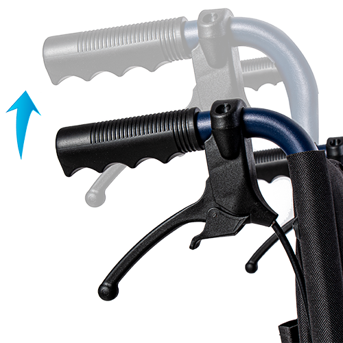 La altura de los puños se ajusta fácilmente en 3 posiciones, permitiendo adaptar la silla entre 90,5 cm y 96,5 cm.