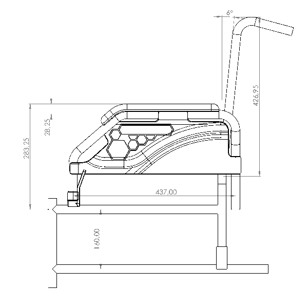 La altura del asiento se ajusta modificando la posición del eje de las ruedas. Dispone de tres puntos de regulación, tanto en las ruedas delanteras como traseras, permitiendo una altura de asiento de 45,5 cm a 50,5 cm.